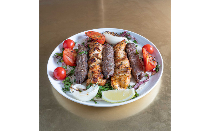 Composé d'une brochette de poulet tendre et juteuse, d'une brochette de kafta savoureuse aux herbes et épices, et d'une brochette d'agneau marinée à la perfection. Accompagné d'une tranche de pain libanais pimenté